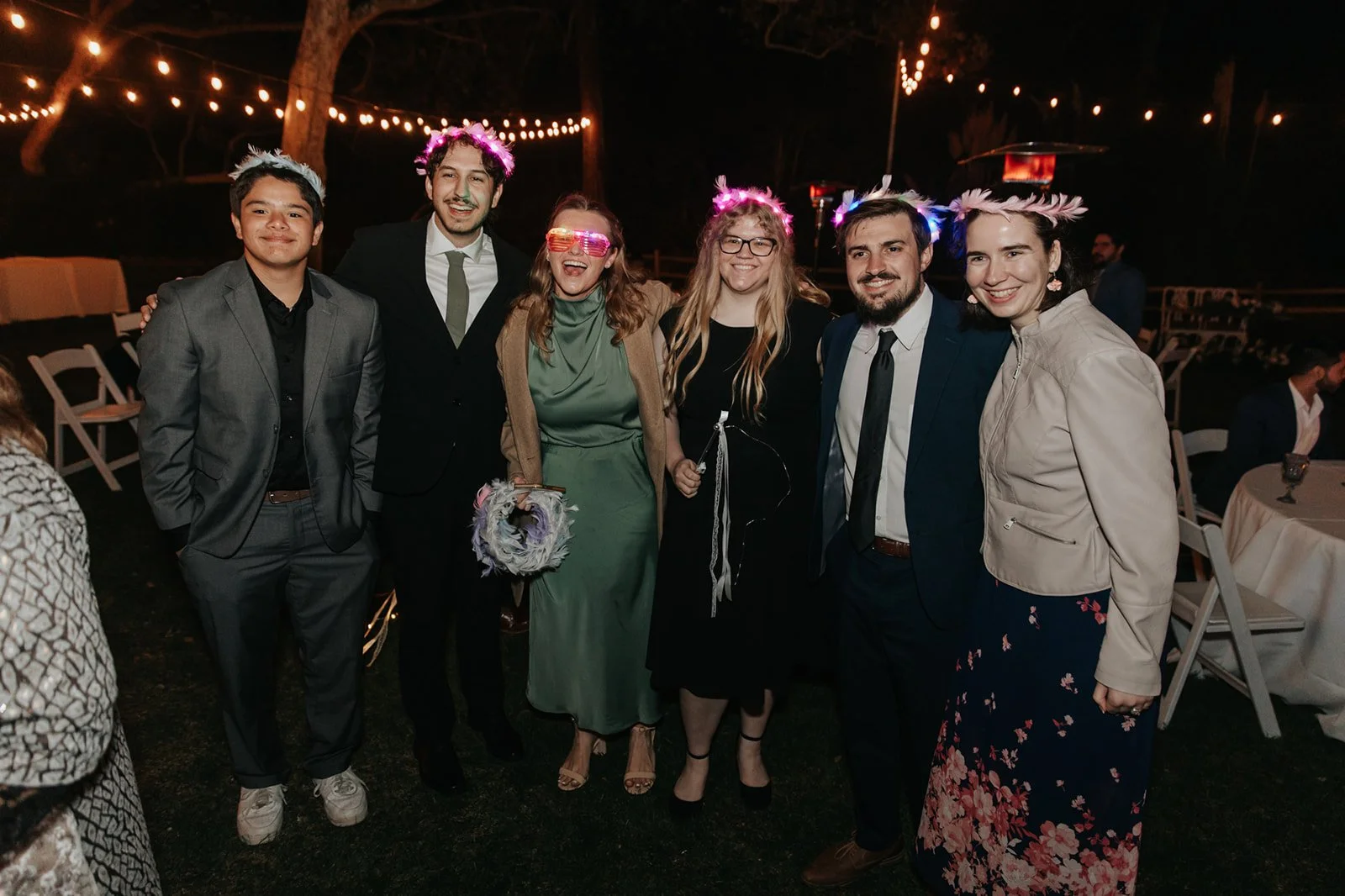 As the evening unfolded, guests gathered on the patio for a reception that felt both lively and cozy. With twinkling lights overhead and gorgeous views stretching into the sunset, everyone enjoyed good food, great music, and plenty of dancing. The joy in the air was unmistakable.
